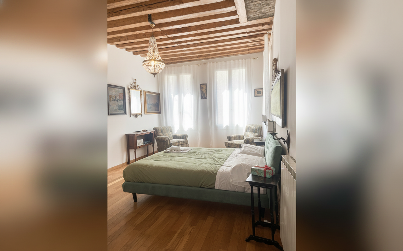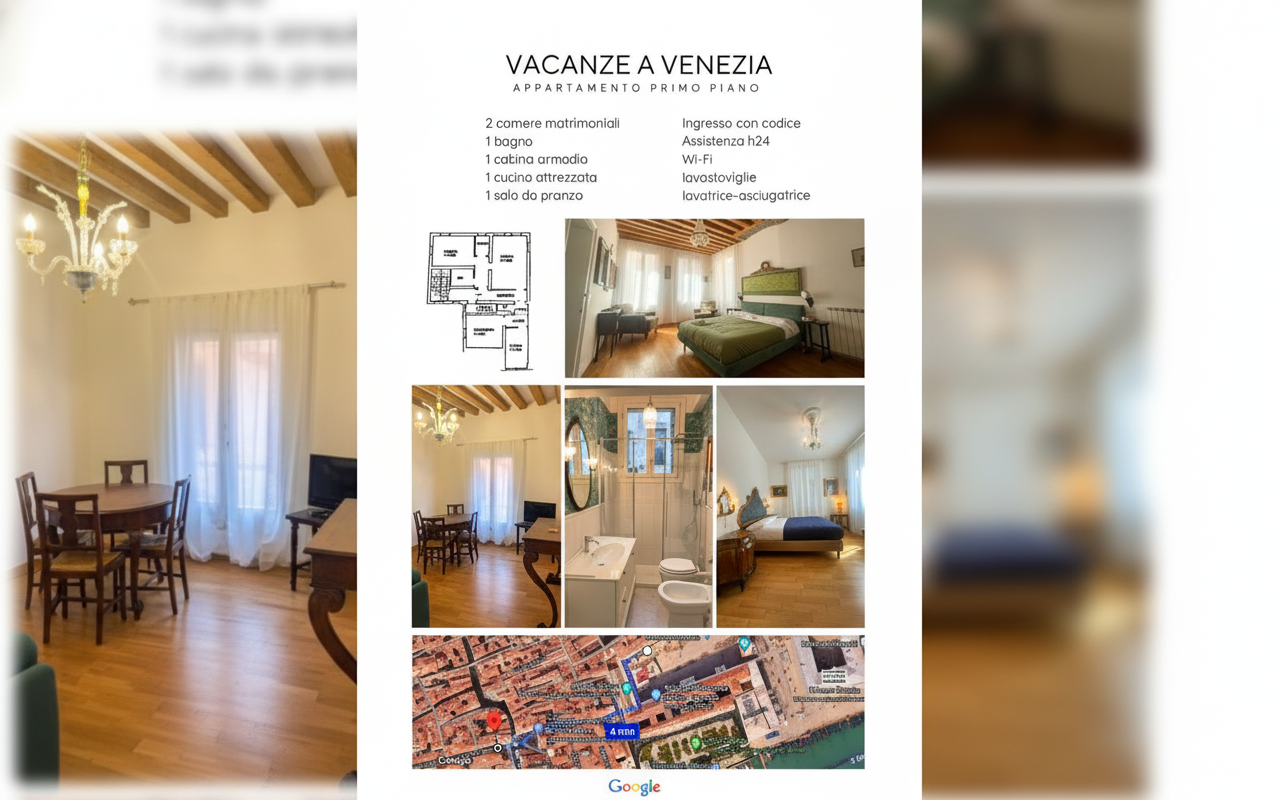Questo appartamento indipendente offre una camera matrimoniale, un soggiorno con divano letto, una cucina completamente attrezzata e un bagno con doccia. Gli spazi sono luminosi e arredati con gusto, offrendo un ambiente accogliente e rilassante. La posizione centrale permette di raggiungere facilmente a piedi le principali attrazioni turistiche, come la Basilica di San Marco e il Ponte di Rialto.